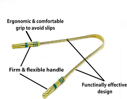 Designed with sturdy, ergonomic pipe-style handles that provide excellent grip and flexibility. The brass finish with a subtle green tint gives it a premium, elegant look – making it one of the most stylish tongue cleaners on the market.