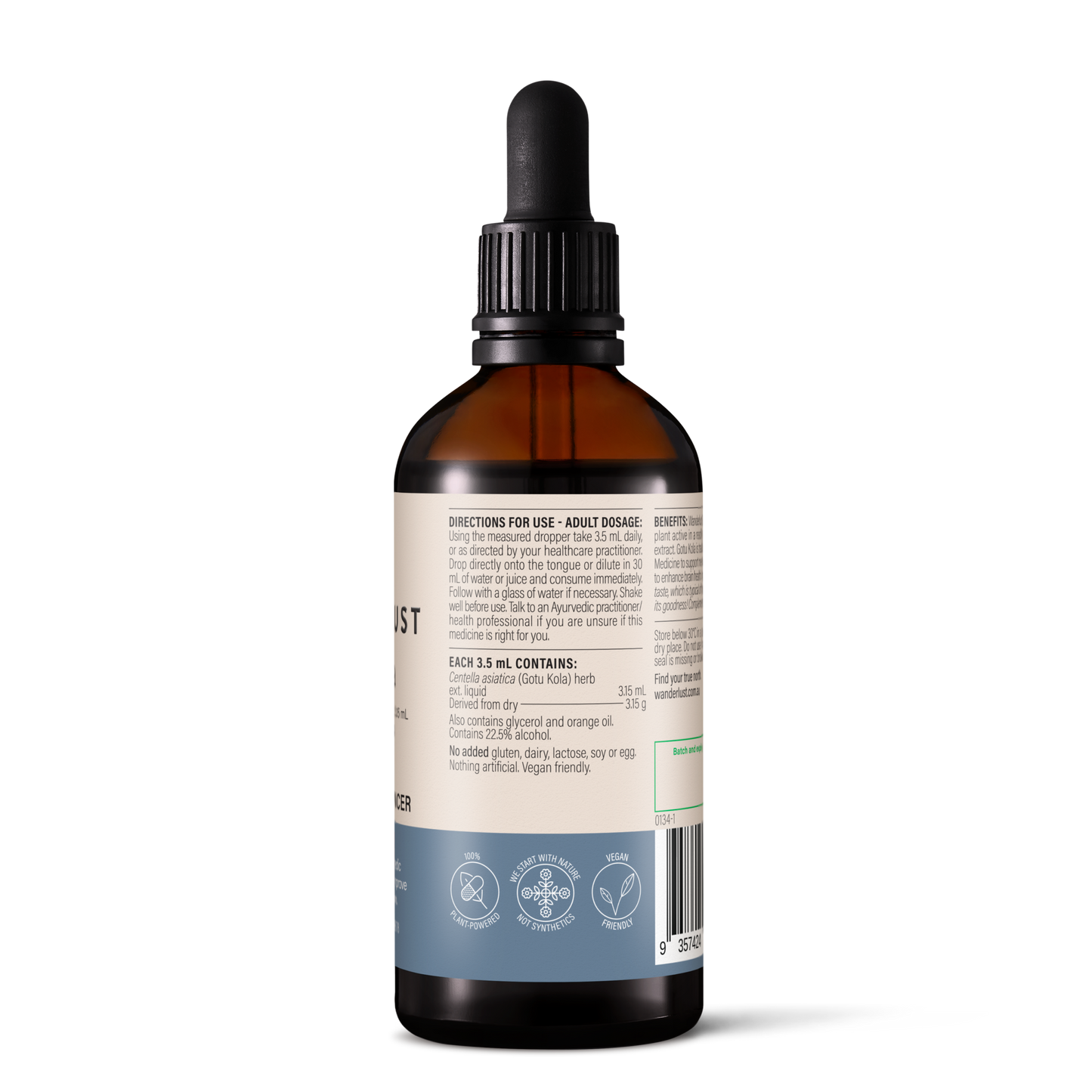 Wanderlust Gotu Kola is a cold-pressed plant active in a readily absorbed liquid herbal extract.